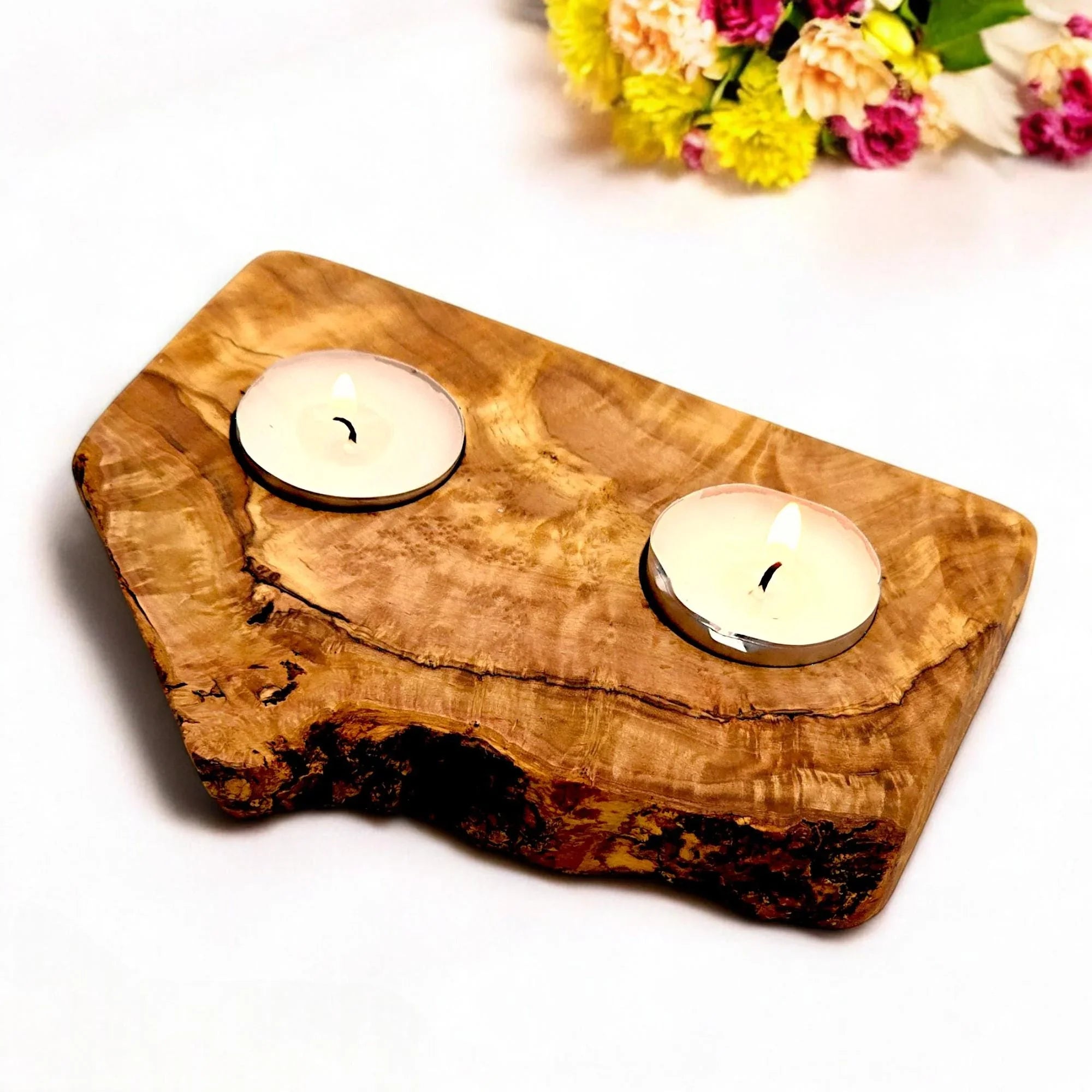 Brighten up your space with a natural touch using this handcrafted Tealight Candle Holder, designed from sustainably sourced olive wood. This flat candle tray is available in 1, 2, 3, or 5-hole variations, making it ideal for creating a warm and inviting atmosphere.
